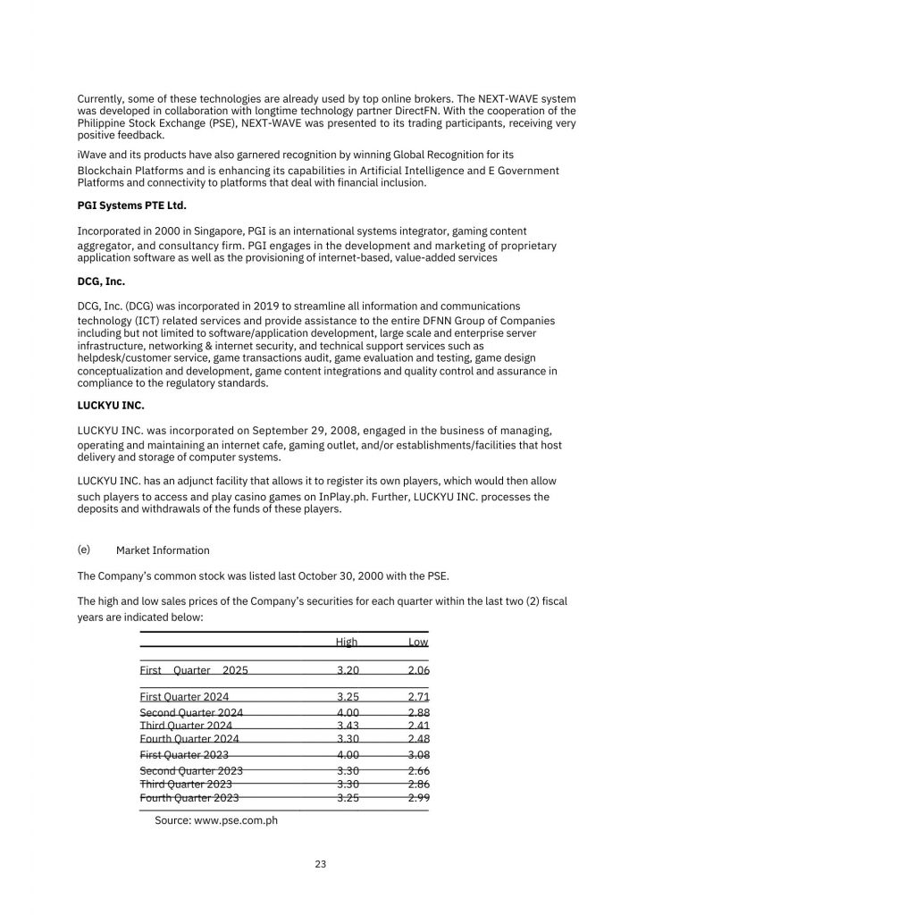 STOCK INFORMATION