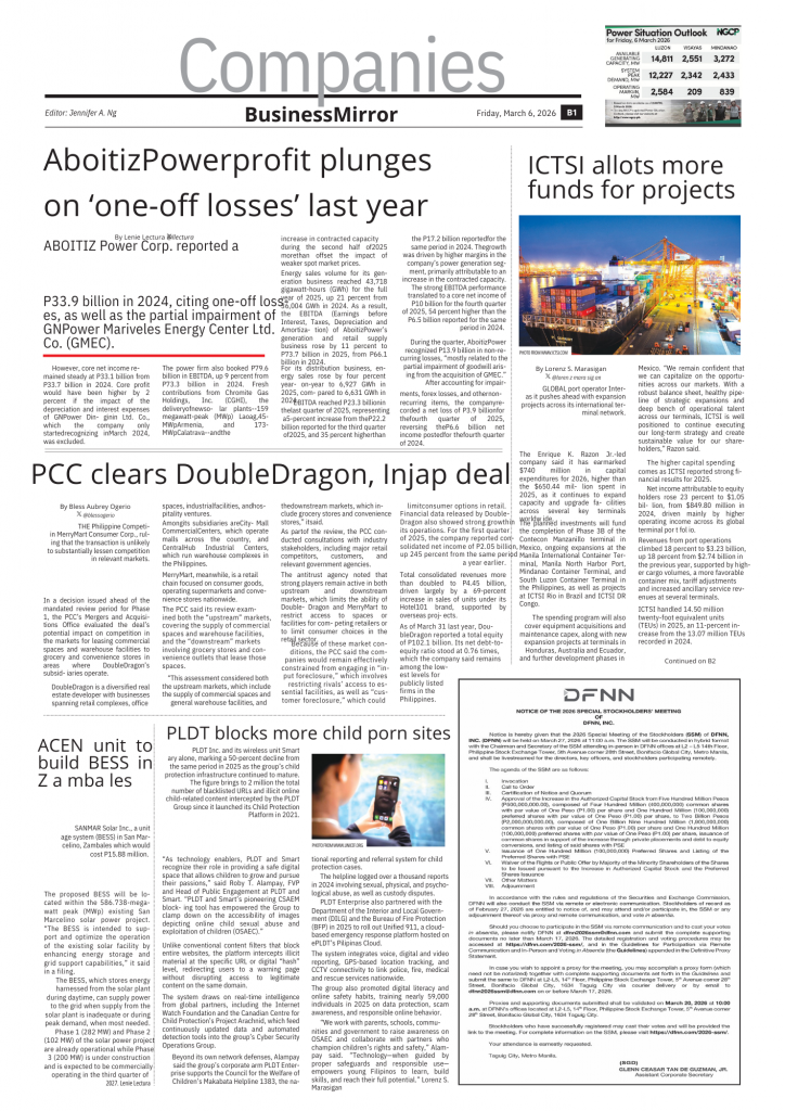 Categories: Media, NewsMarch 9, 2026Leave a comment Share this post Share on FacebookShare on Facebook Share on XShare on X Share on LinkedInShare on LinkedIn Post navigationPreviousPrevious post:DFNN Official Ballot NextNext post:DFNN Notice of the 2026 SSM (Business Mirror, 5 March 2026)Related PostsDFNN Notice of the 2026 SMM (Daily Tribune, 06 March 2026)March 9, 2026DFNN Notice of the 2026 SMM (Daily Tribune, 05 March 2026)March 9, 2026DFNN Notice of the 2026 SSM (Business Mirror, 5 March 2026)March 9, 2026DFNN Notice of the 2024 Annual Stockholders’ Meeting (Daily Tribune, 26 April 2024)April 26, 2024DFNN Notice of the 2024 Annual Stockholders’ Meeting (Business Mirror, 25 April 2024)April 25, 2024DTI, Plug and Play to accelerate startupsApril 19, 2024